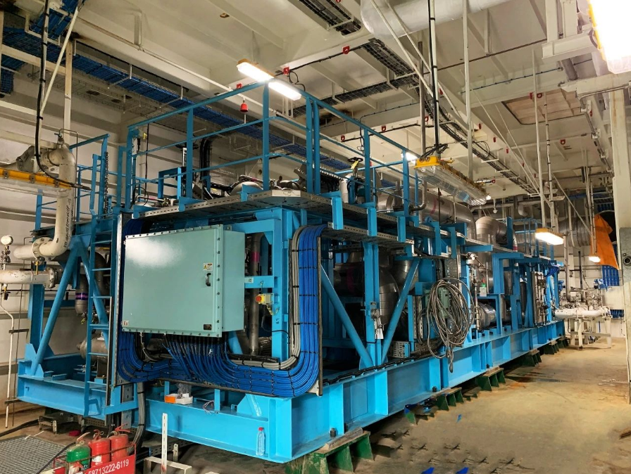 近日,七一一所為滬東中華建造的14000立方米液化天然氣(LNG)加注運輸船所提供的LNG深冷式再液化裝置(以下簡稱深冷裝置)圓滿完成了所有試航測試項目,并順利交付。