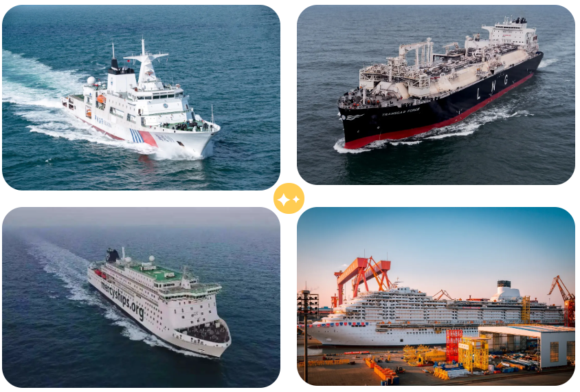 ——滬東中華和江南造船共交付10艘超大型集裝箱船,值得一提的是實現了全球首創最大最先進23000TEU液化天然氣(LNG)雙燃料動力集裝箱船項目的完美收官,進一步鞏固了中國船舶集團在全球超大型集裝箱船市場的領先地位,標志著“中國船舶自主研發+設計+經營+建造+配套”模式的日臻完善。