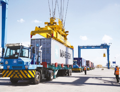 內羅畢郊區的集裝箱內陸港里,高聳的龍門架起重機將一個個集裝箱從貨運列車裝載到排隊等待的卡車上。肯雅塔在啟動儀式上表示,這是一個極具轉變意義的工程,“高質量的公共基礎設施建設能給我們老百姓的生活帶來轉變,促進經濟增長、創造就業、提高青年人的知識技能”。這一內陸港通過“高速、高質、高效”的標準軌鐵路網絡將蒙巴薩港與內陸連接在一起,為當地居民創造就業與財富。