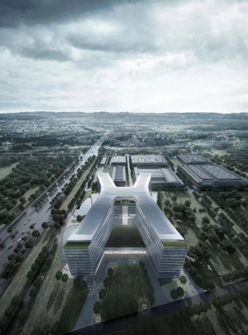 ????▲ 外立面設計簡潔大氣,既與務實創新的航天精神相融合,又和園區內其它建筑單體以及外圍建筑風格相協調。