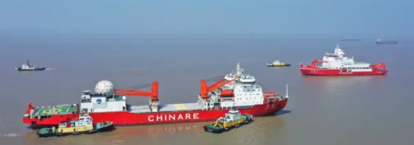 “雪龍2”號是我國首艘自主建造的極地科學考察破冰船,由中國船舶集團旗下七〇八所設計、江南造船建造,于2019年7月11日正式交付,總長122.5米,設計排水量接近14000噸,是一艘滿足無限航區要求、具備全球航行能力,能夠在極區大洋安全航行的具備國際先進水平的極地科學考察破冰船。
