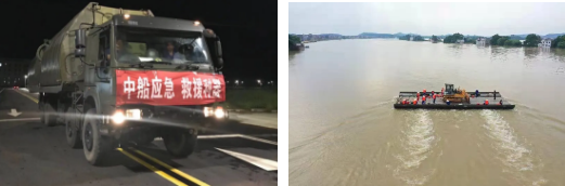 △ 中船應急動力舟橋正在運輸大型工程裝備進行抗洪搶險