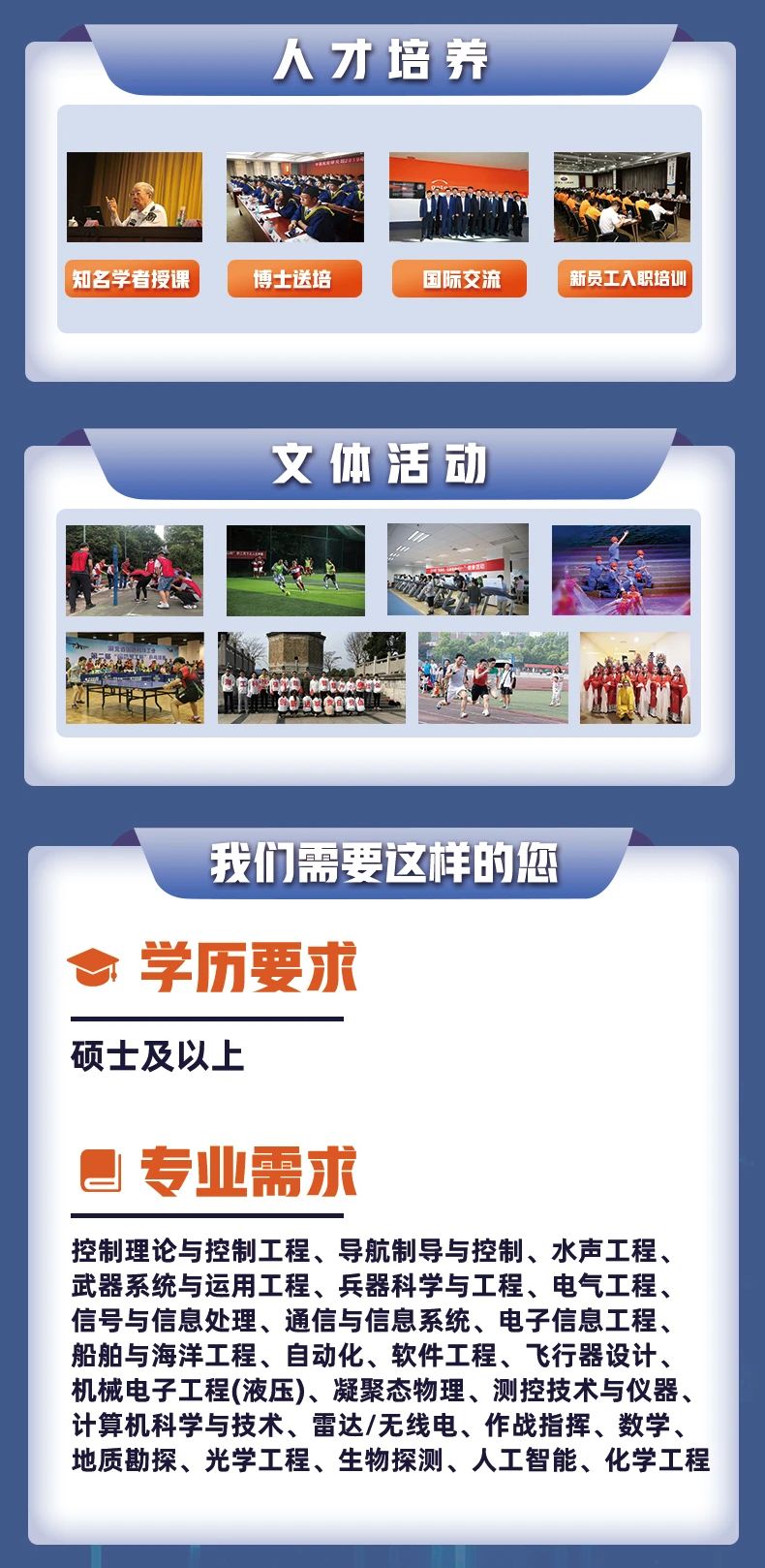 七二五研究所重視人才培養,為新員工安排專業、管理和實踐導師,全方位關注新員工成長,具有完善的人才職業發展通道,著力選拔和培養優秀青年人才,促進人才脫穎而出,激勵人才干事創業,為人才成長提供卓越的事業發展平臺。