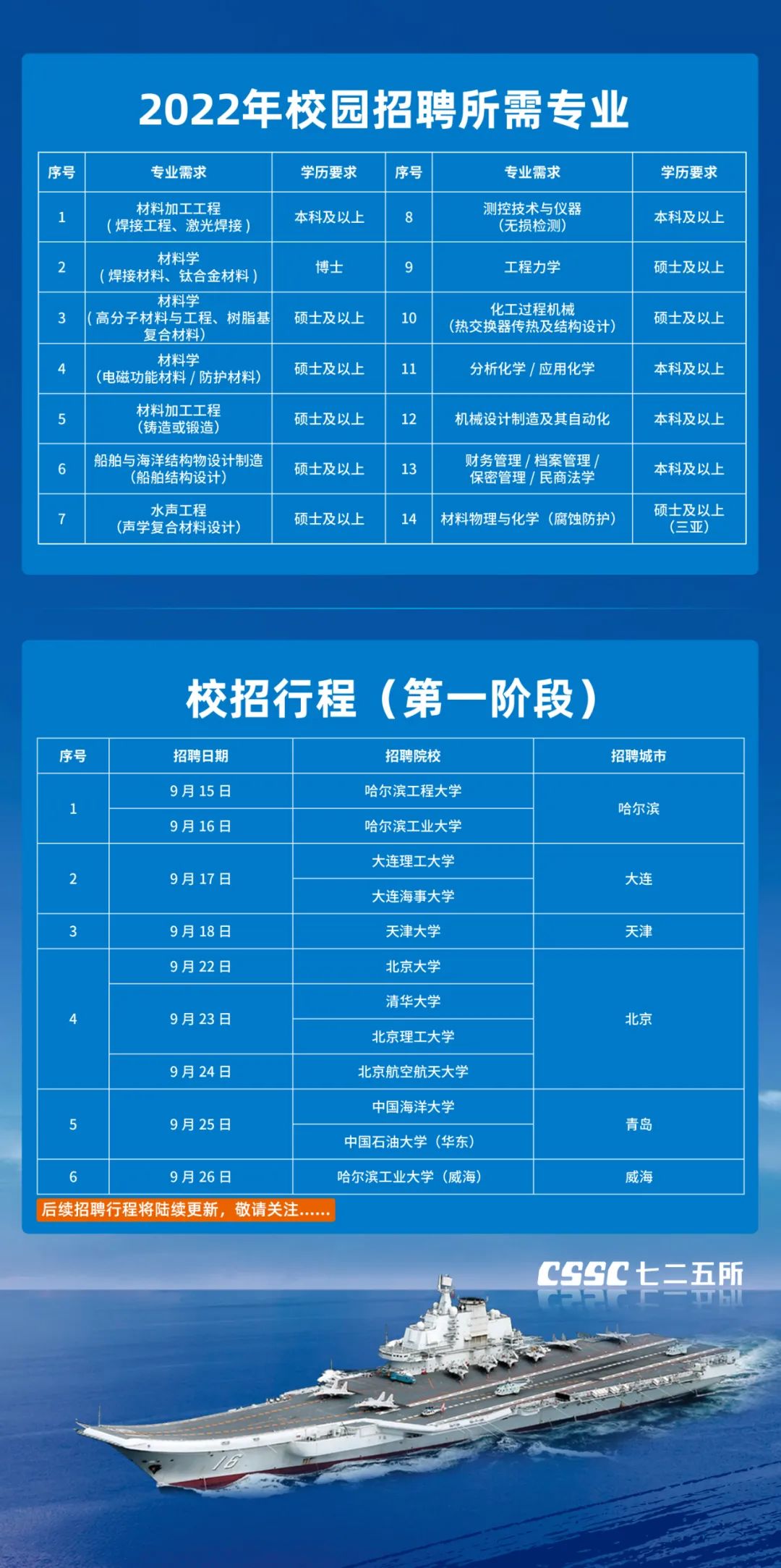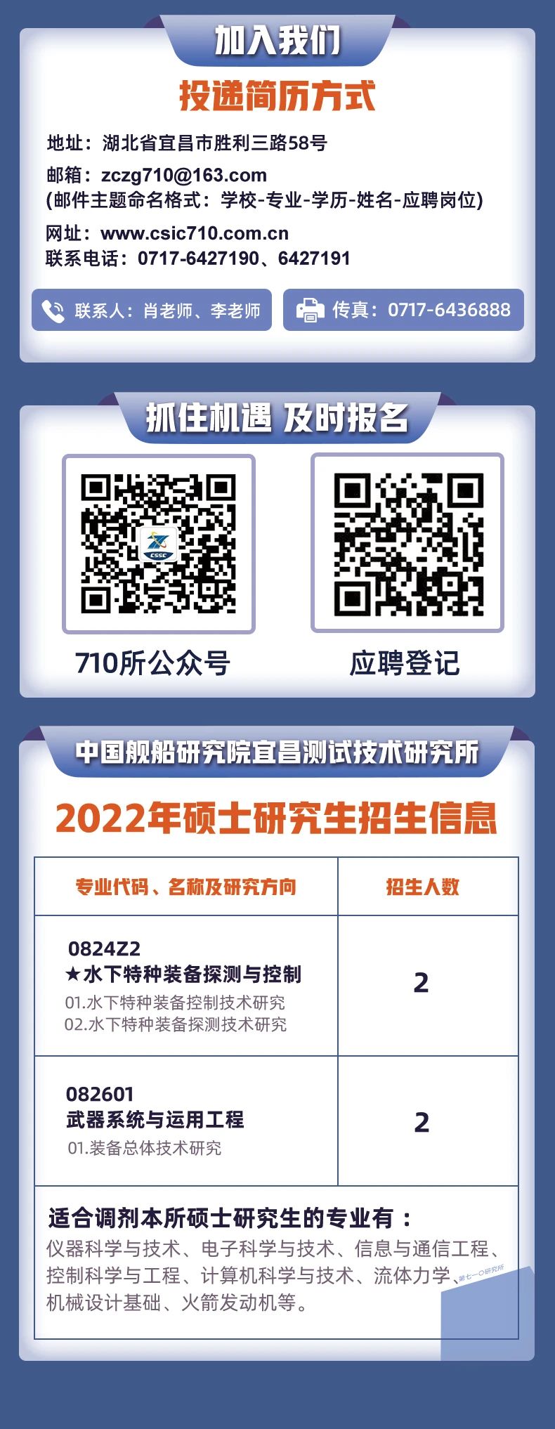 中國船舶集團旗下七一〇所、七二五所校園招聘啟事