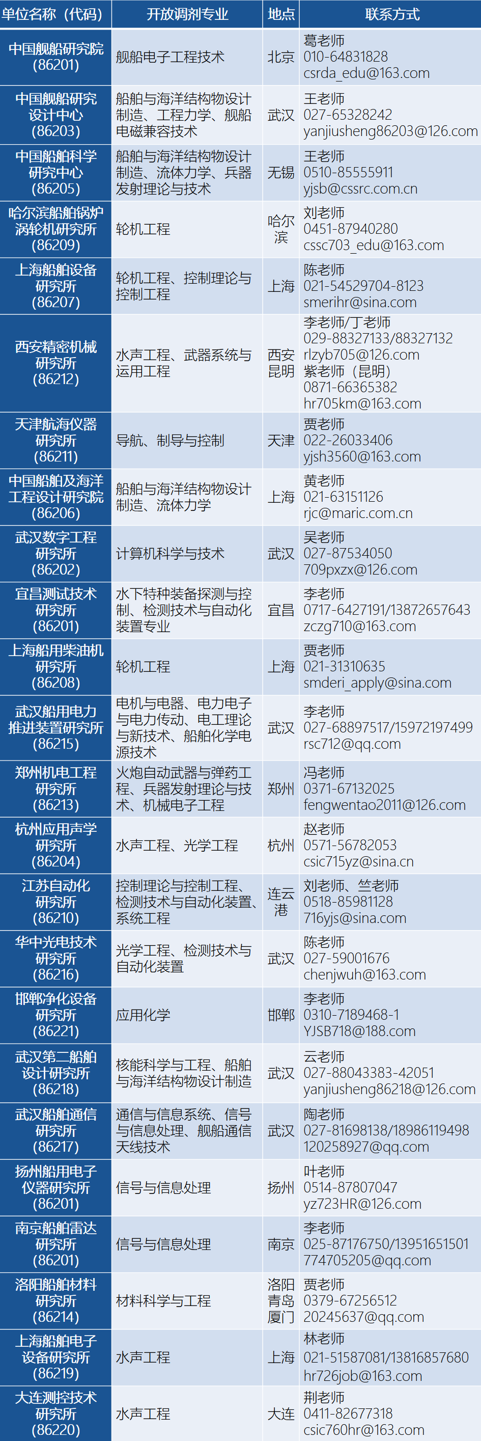 請考生將簡歷、本科成績單、初試成績單等材料打包(文件名以“姓名+初試總分+本科院校+本科專業+申請調劑培養單位+申請調劑專業”命名,如張三+345+哈爾濱工程大學+船舶與海洋結構物設計制造+中國艦船研究設計中心+船舶與海洋工程)投遞調劑單位聯系人郵箱,由培養單位對滿足調劑條件考生擇優篩選后,通知考生參加復試。