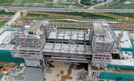 101#總部研發(fā)大樓是湛江灣實(shí)驗(yàn)室一期項(xiàng)目的核心工程,其上部重達(dá)1.8萬(wàn)噸的主體結(jié)構(gòu)由53.4米跨度的轉(zhuǎn)換桁架承托。該轉(zhuǎn)換桁架是世界現(xiàn)有的第二大跨度轉(zhuǎn)換結(jié)構(gòu),同時(shí)與轉(zhuǎn)換桁架兩端相連的雙層鋼板剪力墻核心筒也是實(shí)現(xiàn)該建筑結(jié)構(gòu)設(shè)計(jì)的關(guān)鍵部位。