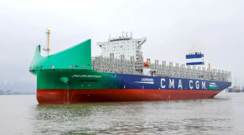 5月23日,由中國船舶集團旗下滬東中華聯(lián)合中船貿(mào)易為法國達(dá)飛集團建造的13000TEU液化天然氣(LNG)雙燃料動力集裝箱船系列4號船“CMA CGM SAOPAULO”號,在滬東中華長興島廠區(qū)命名交付。南美洲東海岸航線又將新添一艘中國“智”造的新一代綠色環(huán)保、高效節(jié)能型集裝箱船,為達(dá)飛集團箱船船隊綠色轉(zhuǎn)型發(fā)展貢獻(xiàn)新的中國船舶動能。