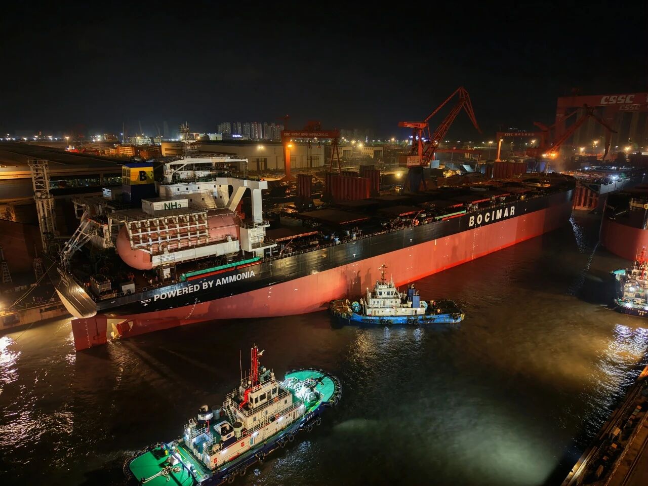北海造船為比利時CMB.TECH公司建造的21萬噸氨燃料動力散貨船45號船和54號船順利出塢。