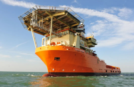 該船型由挪威著名的設計公司Salt Ship Design設計,總長100米,型寬23米,配備4臺柴油發(fā)電機組驅動的電力推進系統(tǒng),2套艉部全回轉推進器、1套艏部伸縮推進器、2套艏部側向推進器,以及1套1500千瓦時的儲能蓄電池系統(tǒng)。船上還配備1臺150噸帶主動波浪補償功能的海工吊,可以在復雜的海況下完成最大3000米水深的海上作業(yè)。