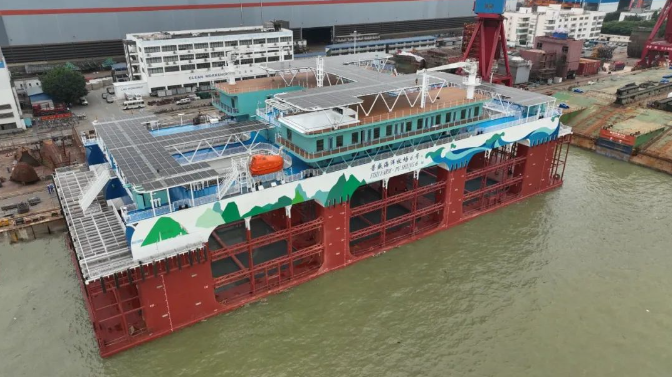 中國船舶集團旗下廣船國際建造的半潛式深遠海智能養殖旅游平臺“普盛海洋牧場6號”命名交付。