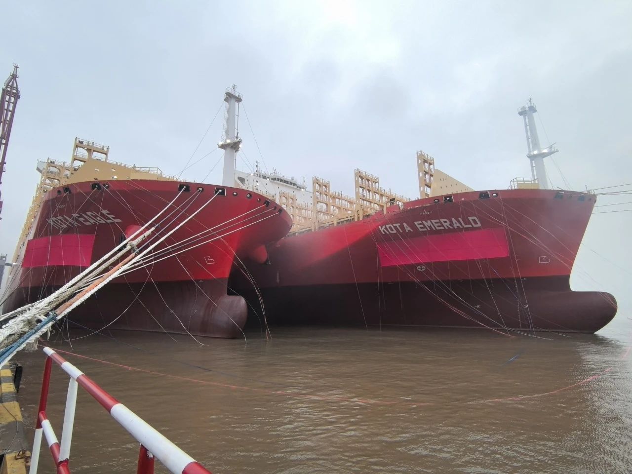 10月15日,中國船舶集團旗下江南造船聯合中船貿易為太平船務建造的14000TEU液化天然氣(LNG)雙燃料動力系列集裝箱船首制船“KOTA EAGLE(鷹城)”號和2號船“KOTA EMERALD(翠城)”號同日命名,其中“KOTA EAGLE(鷹城)”號于當日簽字交付。