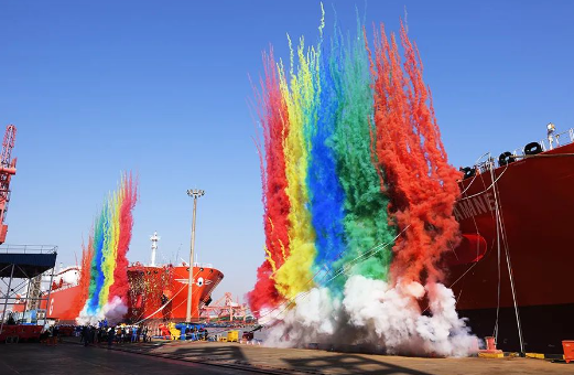 12月16日,由中國船舶集團旗下江南造船為西南海運公司建造的99000立方米超大型乙烷運輸船“GAS CAMELLIA”號和“GAS JESSAMINE”號舉行雙船命名儀式