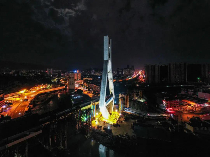 4月10日龍巖大橋主塔轉(zhuǎn)體完成