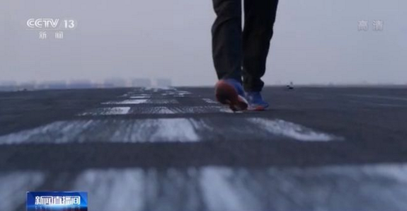 總臺(tái)央視記者 李寧:我現(xiàn)在是在海軍艦載航空兵某部,現(xiàn)在已經(jīng)有戰(zhàn)斗機(jī)進(jìn)入飛行甲板,這個(gè)甲板是按照航母1:1來(lái)建造的。
