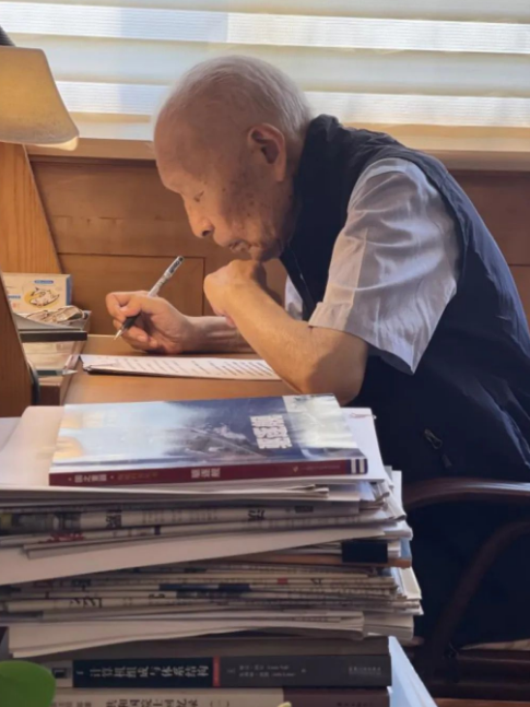 我是記者江曉晨。92歲的潘鏡芙左眼幾乎失去了感光能力,他把工作臺放在陽臺,這里采光好,方便他讀書寫字。下午的陽光透過玻璃,打在書本上。潘鏡芙向前探著身,平靜而專注,大約他還想離書本更近一些,看得再仔細(xì)一些,這樣才能趕上不斷移行的陽光,趕上嘀嗒疾走的時間。
