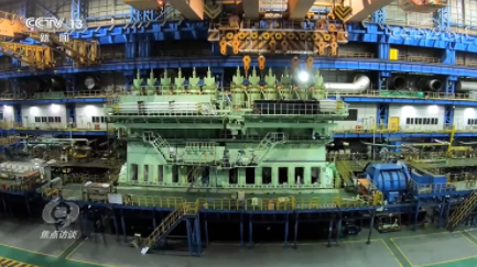 邵煜:“一個氣缸套的重量將近20噸,而氣缸套上面還組裝有氣缸蓋、排氣閥、噴油器等一系列組件,加起來大約就有一百多個。”