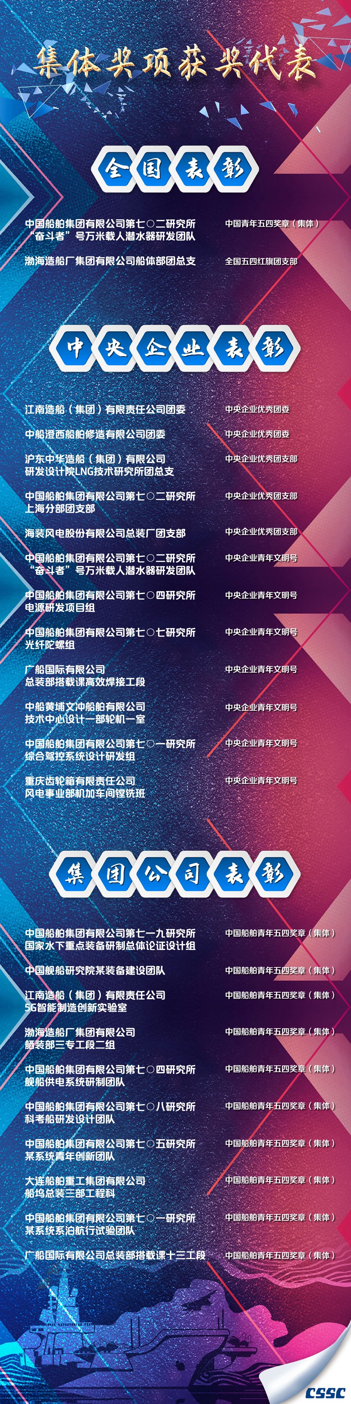 8月19日,中國船舶集團有限公司召開表彰會議。會上宣讀了2021年集團公司團員青年獲得全國和中央企業榮譽的情況通報,以及集團公司黨組頒授首屆“中國船舶青年五四獎章”的決定。
